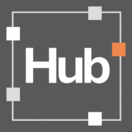 "Visão de rede de conexões e soluções 360 graus da Hub Soluções & Network sobre uma paisagem urbana."
